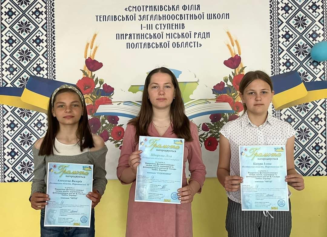 Грамоти за участь у Відкритому фестивалі-конкурсі читців, поетів, художників та фотохудожників пам"яті Володимира Сосюри "Любіть Україну!"