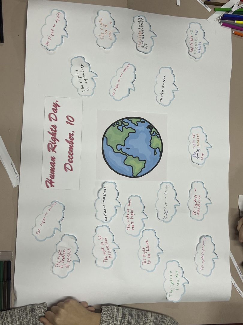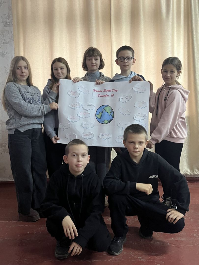 Учні переглянули презентацію «Права людини понад усе», ознайомилися з основними нормативно-правовими актами, які визначають права людини та виготовили постер «Human Right Day, December 10», збагативши свій словниковий запас з англійської мови з даної теми.